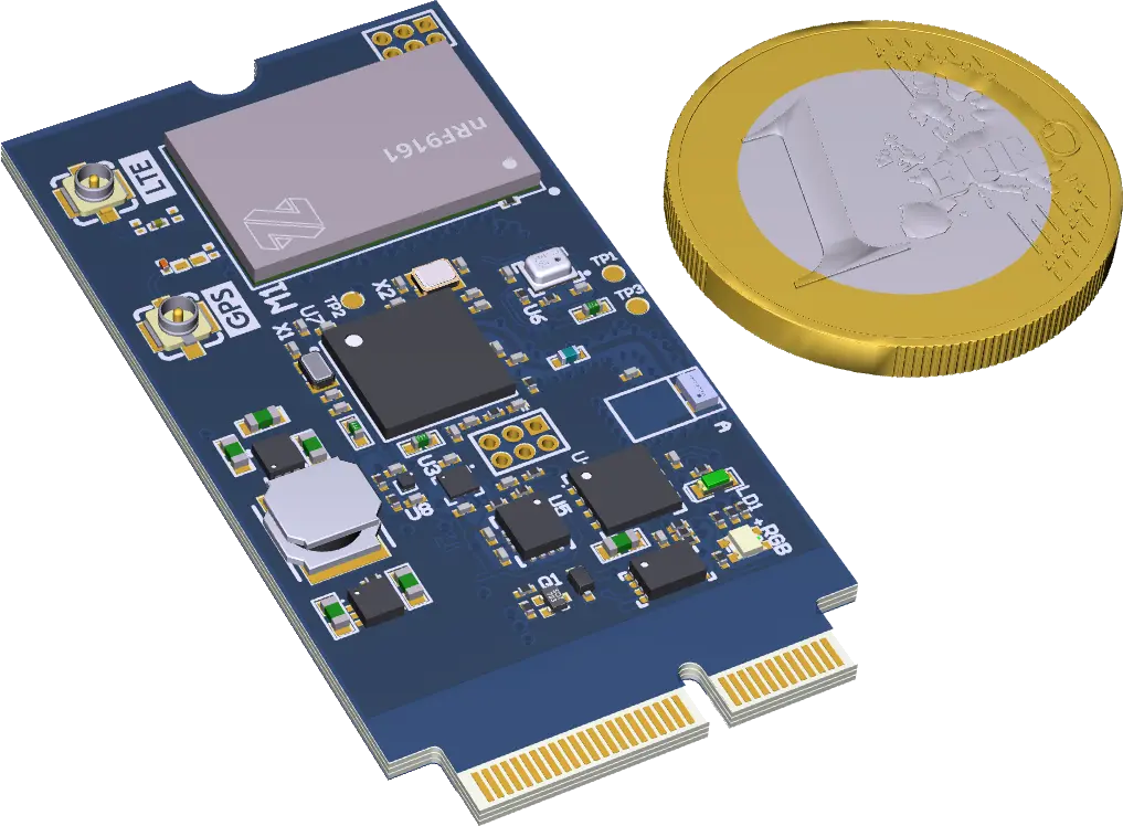 The “nRF Module” is an innovative product designed for companies and individuals developing IoT devices. It is an electronic board with a microcontroller that supports Bluetooth, along with a communication module for 4G data transmission over the mobile network and GPS positioning. The module also includes Wi-Fi connectivity. All key components are sourced from Nordic Semiconductors and optimized for low power consumption.